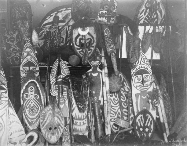 À peine les missionnaires arrivés dans le Golfe de Papouasie, des collectionneurs-marchands ont eux aussi découvert ces régions. L’un des premiers d’entre eux fut probablement Theodore F. Bevan, un Anglais arrivé à 25 ans en Nouvelle-Guinée et dont les collectes sont bien décrites par Barry Craig dans l’article « Scenes hidden from other eyes » in The Artefact 2010 – Volume 33 et repris pour le site Oceanic Art.