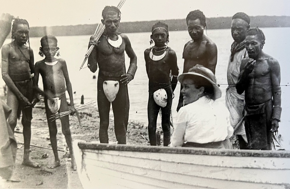 William Patten (1861-1932) est un zoologiste du Darmouth College dans le New Hampshire qui s’est embarqué en mars 1912 avec sa femme pour le Golfe de Papouasie afin de collecter des spécimens zoologiques et des coquillages. C’est sur le bateau qui part de Port Moresby qu’ils vont faire la connaissance d’A.B. Lewis. Ensemble, Patten et Lewis vont photographier les maisons longues de l’île de Goaribari et d’autres villages, et collecter des objets.