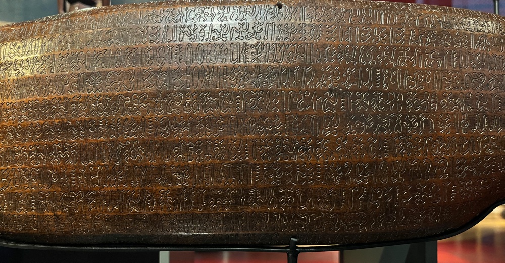Les quatre tablettes, couvertes de glyphes, sont parmi les plus célèbres du corpus : Mamari, L’échancrée, Aruku Kurenga et La Rame. J’ai déjà évoqué cette écriture pascuane dans quelques notes, Rongorongo, Tablettes de l’île de Pâques à Santiago du Chili, des articles qui datent de 2009 !