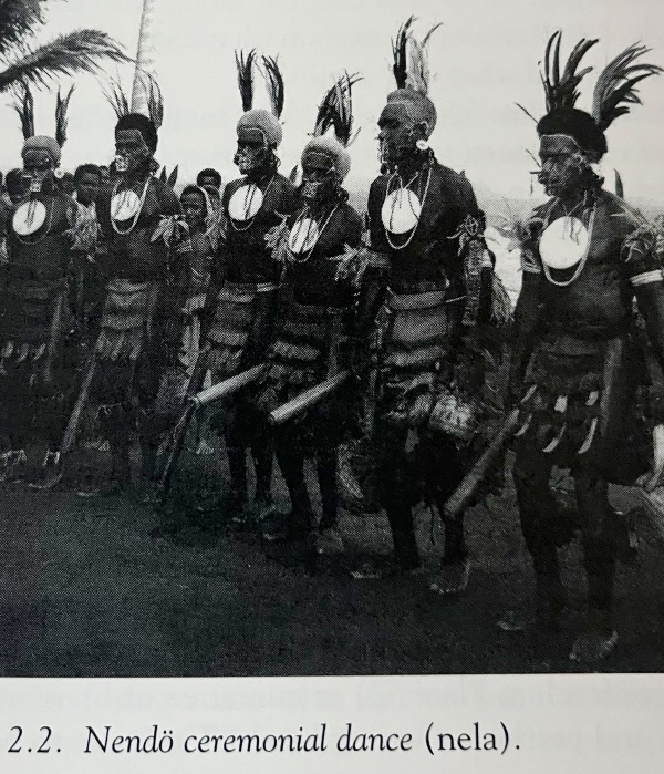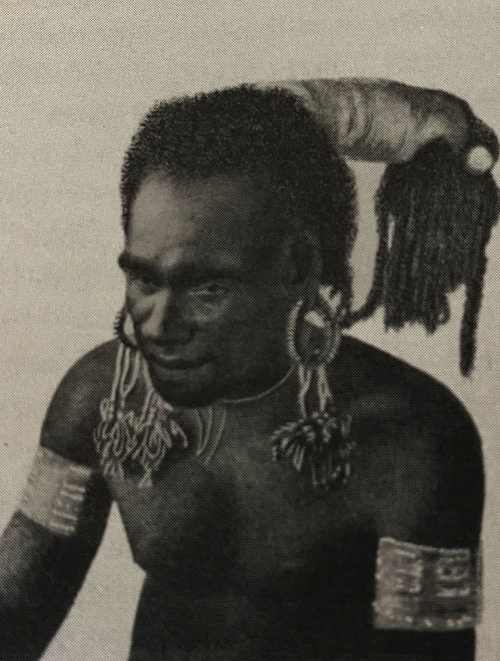 Ces ornements évoqueraient les costumes cérémoniels des jeunes danseurs obla lors des cérémonies nela, en lien avec les divinités dukna mais aussi les parures des personnages importants comme en témoigne la photographie du chef de Graciosa Bay (ci-dessus).