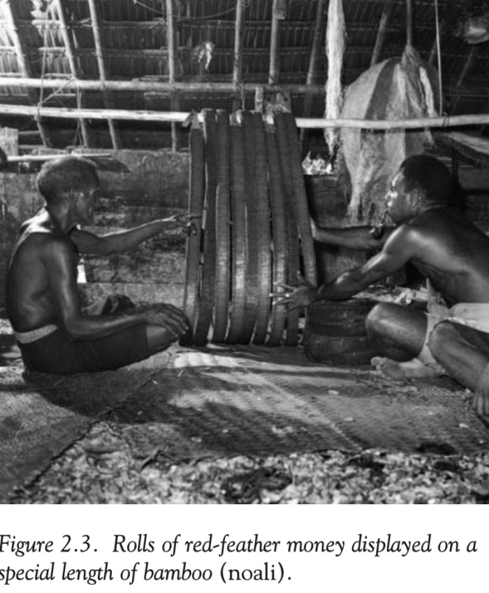Toujours d’après Davenport, les statuettes de leimuba étaient conservées cachées dans un lieu secret « jusqu’à ce que son propriétaire souhaite l’utiliser ou lui parler, espérant attirer l’attention d’un leimuba qui pourrait lui faire cadeau de monnaies de plumes » ( p. 212).