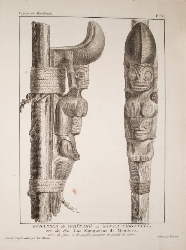 Mais pour Étienne Marchand, l’essentiel ne réside peut-être pas dans la collecte d’objets, en marge de sa mission commerciale. Ce qui va marquer son voyage, c’est la découverte et la nomination d’îles — Marchand, Baux, Deux-Frères, Masse et Chanal (correspondant respectivement à Ua Pou, Nuku-Hiva, Motu-Iti, Eiao et Hatutu). Bien qu’il ait baptisé ces lieux et hissé le pavillon français, il n’a pas officiellement pris possession des îles au nom de la France. Il n’avait ni mandat royal ni mission diplomatique pour cela. Mais comme beaucoup d’hommes de son temps, imprégnés des idéaux révolutionnaires, il semble animé par une forme de “mission civilisatrice”.