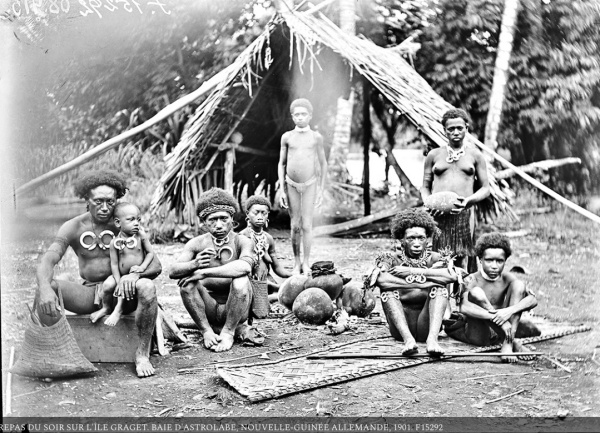Lajos Bíró avec un groupe se préparant pour une cérémonie de deuil, ancienne Nouvelle-Guinée allemande, 1900 © Néprajzi Múzeum NM F 15453