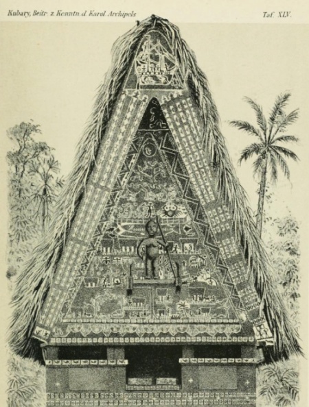 L’ouvrage illustré dont est tiré ce dessin est téléchargeable : Ethnographische Beiträge zur Kenntnis des Karolinen Archipels. Veröffentlicht im Auftrage der Direktron des Kgl. Museums für Völkerkunde zu Berlin