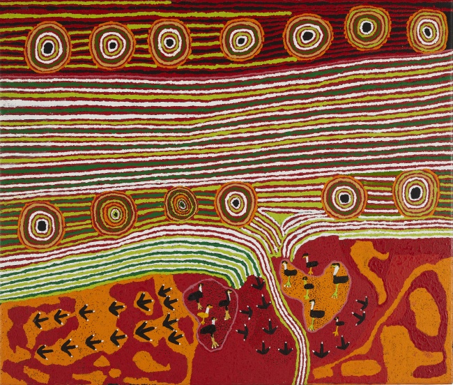 Les peintures deviennent alors des cartes-mémoires, des archives vivantes où se superposent géographie, loi, parenté, cosmologie.