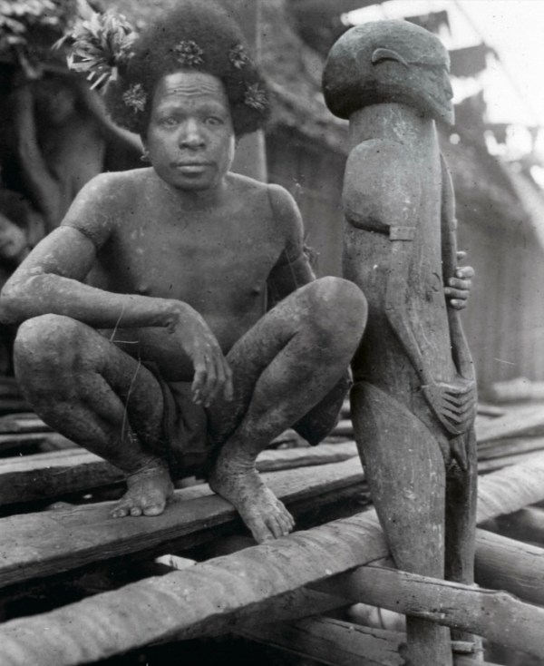 Paul de Rautenfeld, ethnologue suisse, a notamment photographié Iriwake, un dieu de la guerre, en 1925 lors de ses explorations dans le Golfe de Paouasie, documentant des rituels culturels locaux.