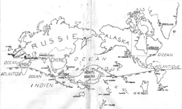 Maintenant tu marches dans Paris tout seul parmi la fouleDes troupeaux d’autobus mugissants près de toi roulent… …tu veux aller chez toi à piedDormir parmi tes fétiches d’Océanie et de Guinée Extrait de Zone, Alcools, Apollinaire – 1912.Carte : Le Monde au temps des Surréalistes in Variétés, 1929.