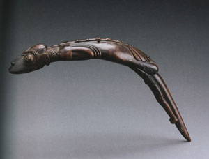 De très rares et bien curieux objets en étoffe d'écorce proviennent de l'île de Pâques.On ne connaît pas leur fonction.A. Kaeppler a émis l'hypothèse que ces figures étaient des "réceptacles" du divin et étaient probablement portés par des personnage de haut rang sur lesquels rejailissait le mana de tels objets devenus sacrés. Photo 1 :... Lire la Suite →