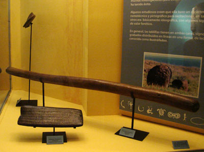 La recherche des deux tablettes Rongorongo et du bâton de chef couvert de glyphes à Santiago s'effectua presque comme une chasse au trésor.Déjà évoquée dans le billet Rongorongo, cette écriture mystérieuse ne lasse de fasciner. Après une très belle visite au Musée d'art précolombien, j'appris que les tablettes se trouvaient peut-être exposées au musée national... Lire la Suite →