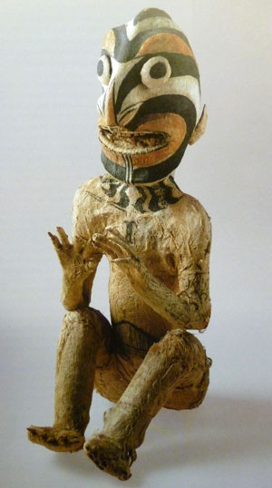 Les figures en étoffe d'écorce telle celle-ci représentée ci-dessus sont toujours restées énigmatiques. Adrienne Kaeppler avait émis l'hypothèse que ces figures étaient des "réceptacles" du divin...Jean Hervé Daude mène son enquête et nous livre dans la vidéo suivante quelques matières à réflexion. Photo : © Belfast University Museum.