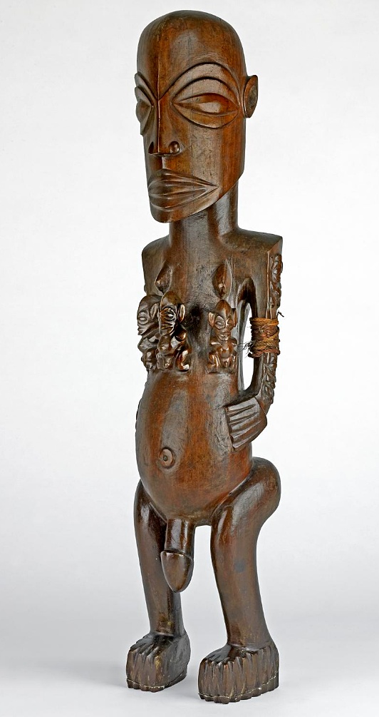 Reliquaire maori Oc.1950, 11.1 © British M. A'a expo. Oceania, Londres 2018. Afin d'étayer son hypothèse ("A'a reliquaire"), Steven Hooper remarque qu'il existait en Nouvelle-Zélande, des coffrets funéraires anthropomorphes (telle la figure ci-dessus, haute de 93cm) réservés principalement à la conservation des os, y compris les crânes. La parenté avec A'a dont la cavité est... Lire la Suite →