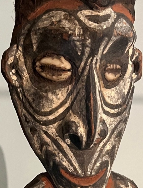 Détail d'une statue Korwar, photo de l'autrice, exposition de la vente Barbier-Mueller chez Christie's, mars 2024 06 mai : Narcisse Pelletier : Anniversaires 22 mai : Le voyage du Rurik