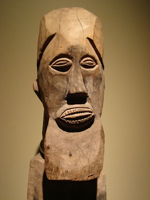 Etrange sculpture dont j'aurai bien été en peine d'en deviner la provenance s'il n'y avait eu l'indication du cartel : Luf, une île de l'archipel Bismarck et la date de collecte, 1883 par le SMS Carola.Voyez-vous d'autres figures avec lesquelles la mettre en rapport ? Curieux encore ce masque, originaire de Tami, petites îles au... Lire la Suite →